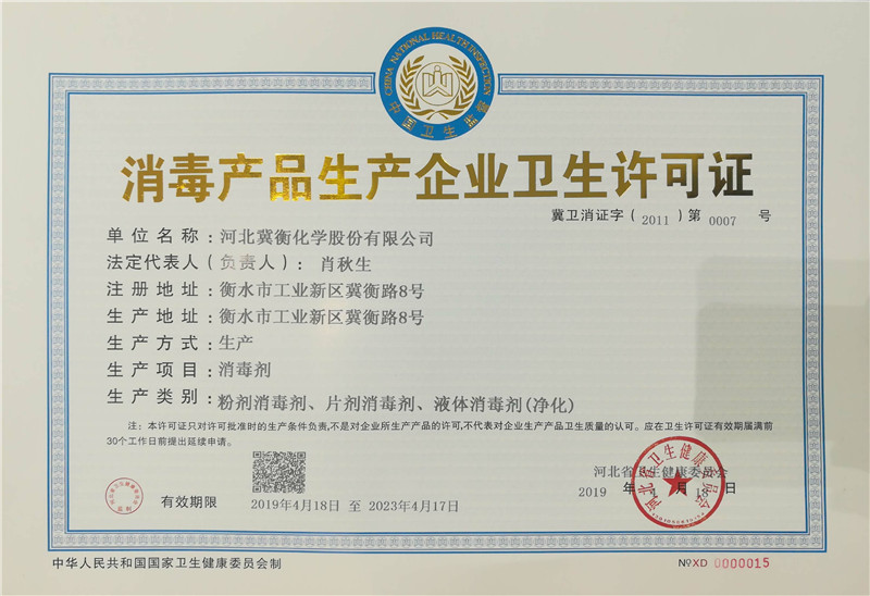 我公司于2001年成立以來,經(jīng)過十幾年的發(fā)展,現(xiàn)已成為國(guó)內(nèi)專業(yè)生產(chǎn)氯代異氰尿酸系列消毒劑產(chǎn)品的生產(chǎn)基地,主要產(chǎn)品為:三氯異氰尿酸、二水二氯異氰尿酸鈉、二氯異氰尿酸鈉、氰尿酸,三氯異氰尿酸被評(píng)為“河北省名牌產(chǎn)品” 和 “河北省優(yōu)質(zhì)產(chǎn)品”,產(chǎn)品已全部通過ISO9001、ISO14000和OHSMS18000體系認(rèn)證,現(xiàn)擁有省級(jí)企業(yè)技術(shù)中心一個(gè),各類專利16項(xiàng),注冊(cè)商標(biāo)21個(gè),公司生產(chǎn)的三氯異氰尿酸被評(píng)為“國(guó)家級(jí)重點(diǎn)新產(chǎn)品”,二氯異氰尿酸鈉、三氯異氰尿酸復(fù)合片、氰尿酸被評(píng)為“河北省高新技術(shù)產(chǎn)品”,二氯異氰尿酸鈉消毒粉、消毒泡騰片被列入中華預(yù)防醫(yī)學(xué)會(huì)“健康金橋重點(diǎn)工程”,“冀衡”、“消仕”商標(biāo)被評(píng)為“河北省著名商標(biāo)”。