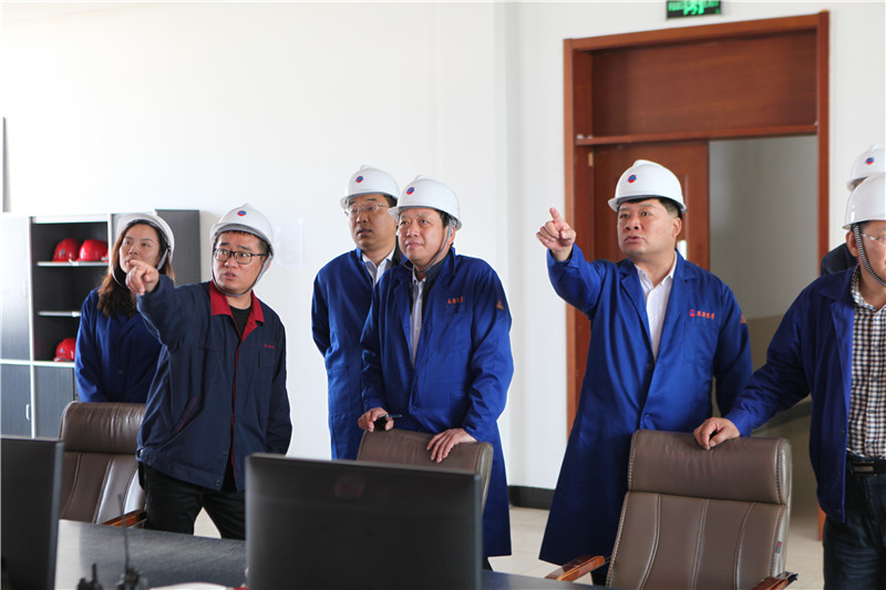 在生產(chǎn)調(diào)度中心肖輝副董事長向息局長介紹特種設(shè)備事故應(yīng)急演練現(xiàn)場情況
