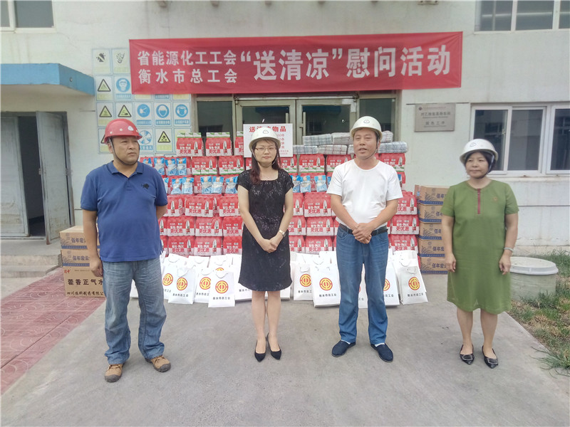 8月22日,衡水市總工會黨組成員、經(jīng)審委員會主任劉莉,經(jīng)審辦主任楊新宇代表省能源化工工會、市總工會到冀衡集團開展“送清涼”慰問活動,集團工會主席韓紅喜接待了慰問組成員一行,在慰問活動現(xiàn)場,上級工會領導對我集團職工戰(zhàn)高溫、斗酷暑,不畏困難的精神表達了敬意,并為大家送上礦泉水、毛巾、冰糖、藿香正氣水等防暑降溫慰問品,讓高溫下堅持生產(chǎn)的職工們親身感受到了上級工會組織的關愛,大家表示一定要努力工作,為企業(yè)發(fā)展做出更大的貢獻。