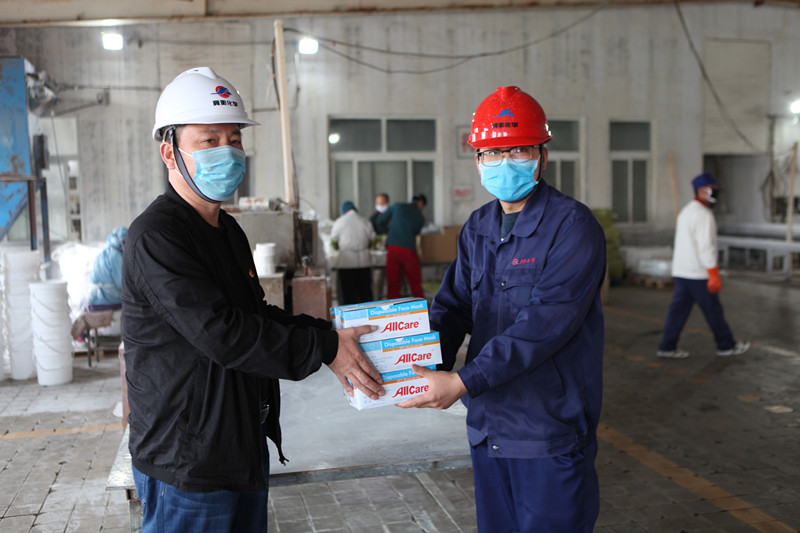 自疫情爆發(fā)以來,我公司接到上級(jí)生產(chǎn)消毒劑產(chǎn)品的生產(chǎn)任務(wù)后,全體干部職工加班加點(diǎn),全力滿足疫情防控的需要,韓主席叮囑和鼓勵(lì)一線員工既要履行好職責(zé),也要做好自身防護(hù),確保身體健康,積極投身于疫情阻擊戰(zhàn)中,為贏得疫情防控和安全生產(chǎn)的雙勝利做出貢獻(xiàn)!