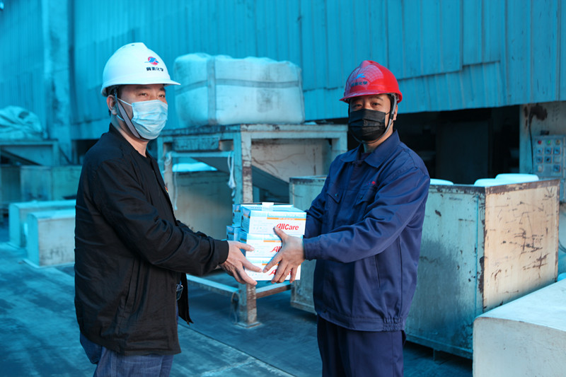 集團(tuán)工會(huì)韓紅喜主席為我公司一線職工發(fā)放口罩